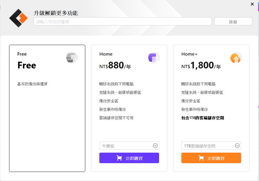 - 免費版本雖然功能豐富,但某些進階功能(例如事件觸發備份、Outlook 備份、雲端備份支援等)可能只在付費版中提供。