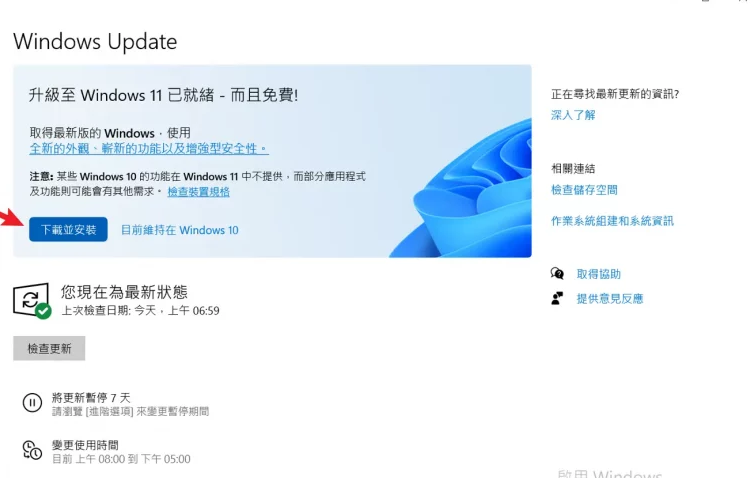 透過 Windows Update 直接將 Windows 10 升級到 Windows 11 需要先把 Windows 10 升級到最新版本。