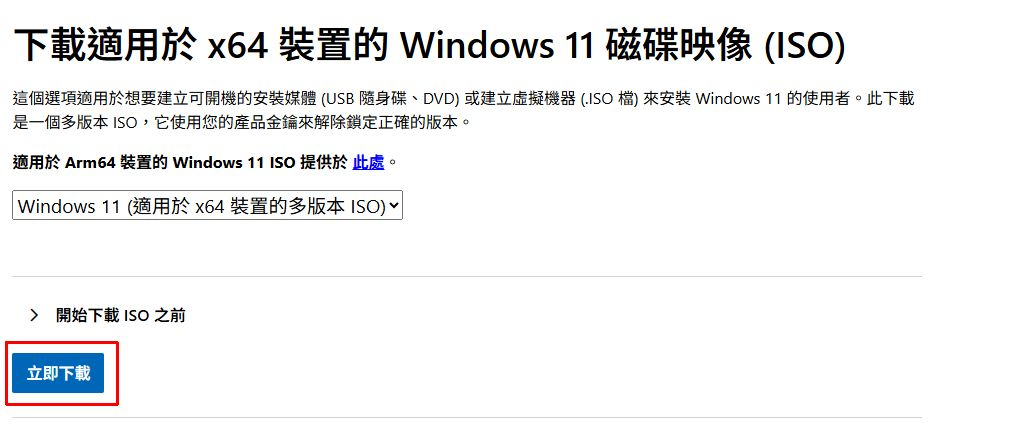 下載適用於 x64 裝置的 Windows 11 磁碟映像 (ISO)